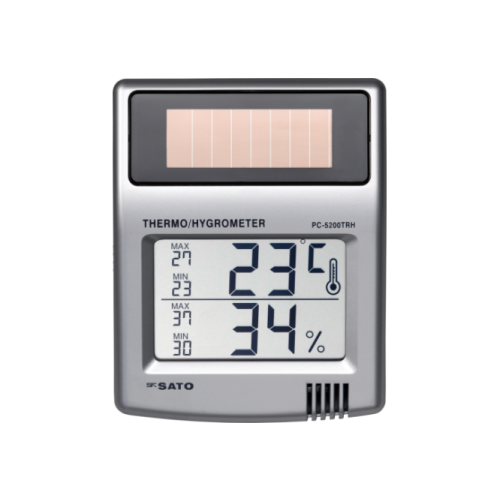 ソーラー電池を電源に使用、室内の温度・湿度をデジタル表示し、しかも各最高・最低値も常時表示します。