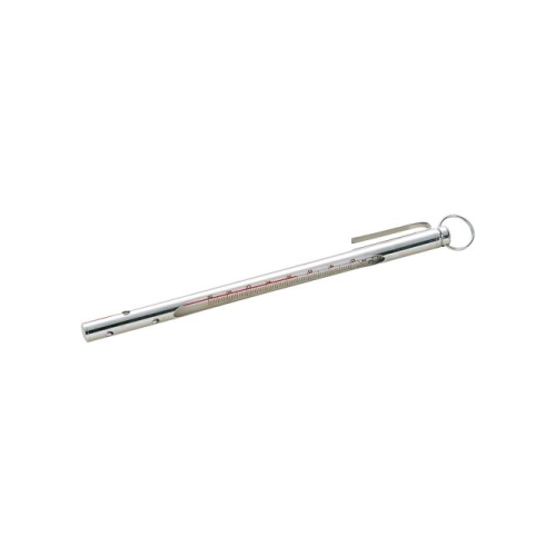 150mmのガラス棒状温度計を金属ケースに入れて使用します。