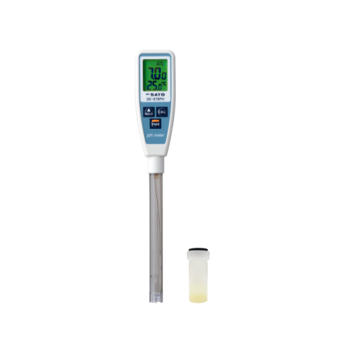 センサ部形状が細長いため、フラスコなどの口径が小さい容器に直接入れて測定することが可能なペンタイプpH計です。