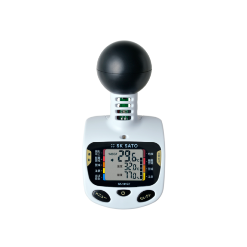 熱中症予防の目安や暑熱環境による熱ストレスの評価として使用される暑さ指数(WBGT)を計ることができる黒球温度計・温度計・湿度計が一体となったコンパクトサイズの黒球型携帯熱中症計です。